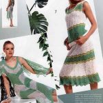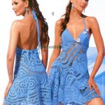 İkinci modelimiz ise genç kızların çok beğenecekleri bir model; deniz mavisi tonunda göğüs ve sırt dekolteli yaz ayları için harika bir elbise modeli. Yarım halkalar şeklinde örülen modelin tek göğüs üstüne işlenen küçük çiçek işlemeleri ise ayrı bir hava ve özgürlük katmış elbiseye. Yaz aylarını sahil kenarındaki şehirlerde geçirmek isteyen ve yaz akşamlarında eğlenmeyi seven kızlar için harika bir seçim. Üçüncü modelimiz renkli mi renkli sıcak sıcak bir model; ip askılı, sırtı açık mini bir elbise var karşımızda, renkleri ile göz dolduran insanın içini ısıtan bir model, tamamen renkli çiçek ve oval motifler ile hazırlanmış bu elbise yaz akşamlarınızı güneşlendirecek özellikte bir tasarım, bol güneşler bayanlar 🙂