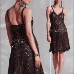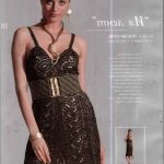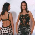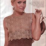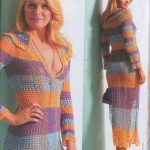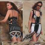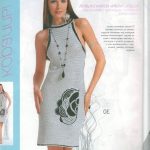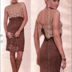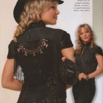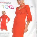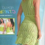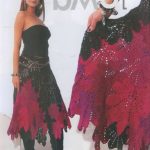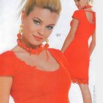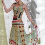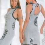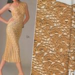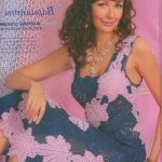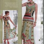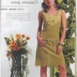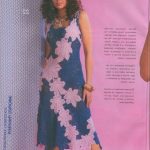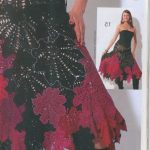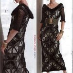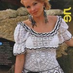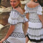 İkinci modelimiz de ise ana renk beyaz, verilen desenin örneğini ortaya çıkarmak için ise siyah şeritler kullanılarak tığlama yapılmış. Omuzlardan aşağı inmeye hazır bir yaka şekli verilerek tasarlanan elbisenin çok fazla ayrıntısı olduğu görülüyor; Göğüs kısmı kare örneği verilerek örülmüş, bel kısmı ise sıralı çiçekler yaprak döküyor adeta, eteklere doğru inen üç farklı model yine siyah şeritler ile belirginleştirilmiştir. Eteklerdeki modelin üstlerine iki – üç santimlik katlar verilerek genişleyen bir şekilde tasarım yapılmış. Göğüs üstü gibi sırtı da açık tasarlanan elbisenin kolları büzgüleştirilerek büzgüden sonra pileli şekil verilmiş, bu yeni elbise modelini gören bayanlarımız eminim ki bu modelin ispanyadan geldiğini düşenecekler, çünkü şekil itibari ile tam bir ispanyol elbisesi… Ören bayanımızın ellerine sağlık, çok emek verdiği ve uzun bir tasarım düşüncesinden sonra örgüye başladığı görülüyor. Ellerinize sağlık.