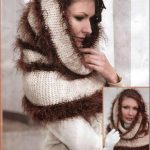 Diğer modelimiz ise hem şapka hem şal hemde boyunluk şeklinde tasarlanmış ve düz örgü ile iki farklı ip ile örülmüş; belli bir sıra krem rengi ip ile örüldükten sonra sakallı kahve rengi ip ile de devam edilmiş. Çok şık ve farklı bir model arayışında olan bayanlarımız için üzerinde oynama yapmadan bile modelimiz örülebilir.