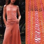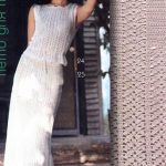 Etek ise üç modelden ve bu modeller ile tasarlanan şekillerden oluşturulmuş. Dizlere kadar düz örgü ile örülen etek dizlerden sonra bir sıra yuvarlak motifler ile süslenmiş ve hemen altına parça parça örülen uzun motifler bileklere kadar iniyor. Çok şık ve gösterişli olan dantel beyaz renkli takımımız tam bir emek eseri olarak karşımızda. İsterseniz bluz etek, isterseniz yelek etek olarak yada kendine güvenen bayanlarımız üç parça halinde bu muhteşem dantel örgü bayan takımını örebilirler.