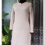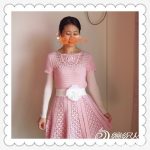 İlk modelimiz tığ ile örülmüş, kalın büyük çiçek tokalı bir kemer kullanılarak tasarlanmış çok şık bir model, file modeli ve küçük baklava dilimli deseni ile uyum içinde tasarlanan muhteşem modeli ile yaz günlerinde rahatlıkla giyilebilecek bir elbise modeli. Köşeli yaka olarak tasarlanan elbise göğüs üstüne verilen modelden sonra bele kadar diz bir örnek verilmiş, belden alt kısmı ise genişleyerek ve desen verilerek tasarlanmıştır.