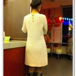 İkinci modelimiz ise kış aylarında giyilebilecek, uzun kollu, fırfırlı geniş yuvarlak yakalı, etekleri desenli ve pileli zarif bir model, beyaz renkli ip ile bele verilen ince desen adeta bir kemer havası yaratmış, yine etek uçlarında ve kol uçlarında bir şerit şeklinde kullanılan beyaz renk elbisenin havasını değiştirmek için yeterli bir ayrıntı olarak kendini gösteriyor. mor renk ile tasarlanan örgü elbise modelini kırmızı renk ile düşünemiyorum, oldukça iddialı ve canlı bir elbise halini alacağından eminim, bilmiyorum belki bu düşüncem kırmızıya olan tutkum yüzünden de kaynaklanıyor olabilir.