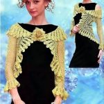 En güzel, trend ve modern örgü bayan panço ve bolero modellerini bir araya getirerek hazırladığım zarif bayan örgü panço ve bolero modelleri hiç bir yerde bulamayacağınız modeller ve farklı tasarımlar ile hazırlanarak bu yılın moda kıyafetleri arasındaki yerini aldı. Daha çok aksesuar olarak bayanların kullandığı panço ve bolero modelleri renk renk değişik desen ve modelleri ile hayatımıza girmekte zorlanmayan aksesuarlar arasında. İlk modelimiz tığ ile örülen örmesi kolay, kendisi gösterişli bir bolero modeli; açık sarı renk ile örülen kollarının yarısı ve sırt tarafı sık delikli file modeli il tasarlanan, kollarından bilek üstüne doğru inerken genişleyen şekil ve modeli göğüs üstü ve yaka kısmında da kullanılmıştır. özellikle yaka kısmı modelin daha uzun örülmesi ile katlanarak hoş bir görüntüye bürünmüştür. Elbiselerin üzerine özellikle simli ip ile örüldüğünde abiye kıyafetlerin üzerinde çok şık duracağına emin olduğum bir tasarım.
